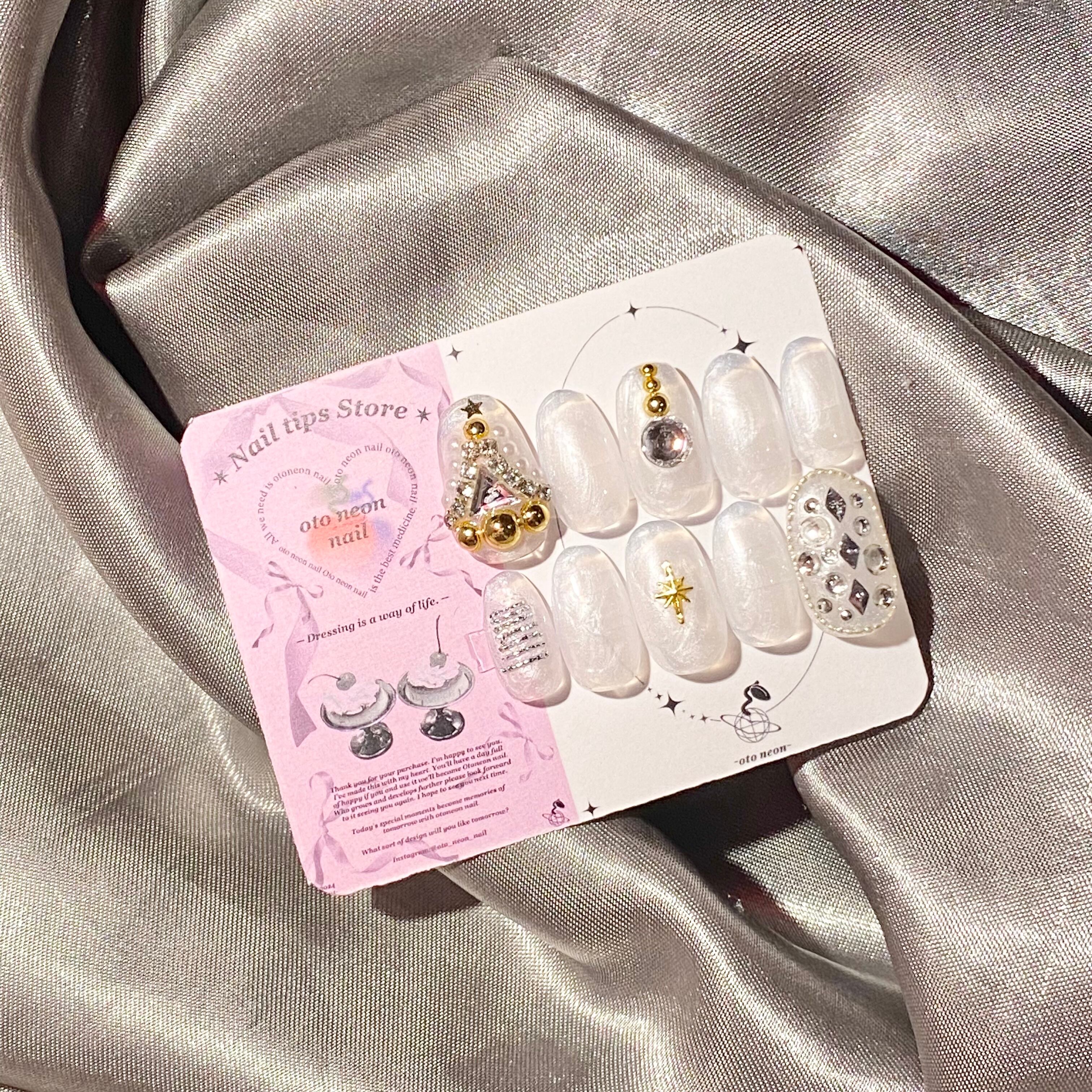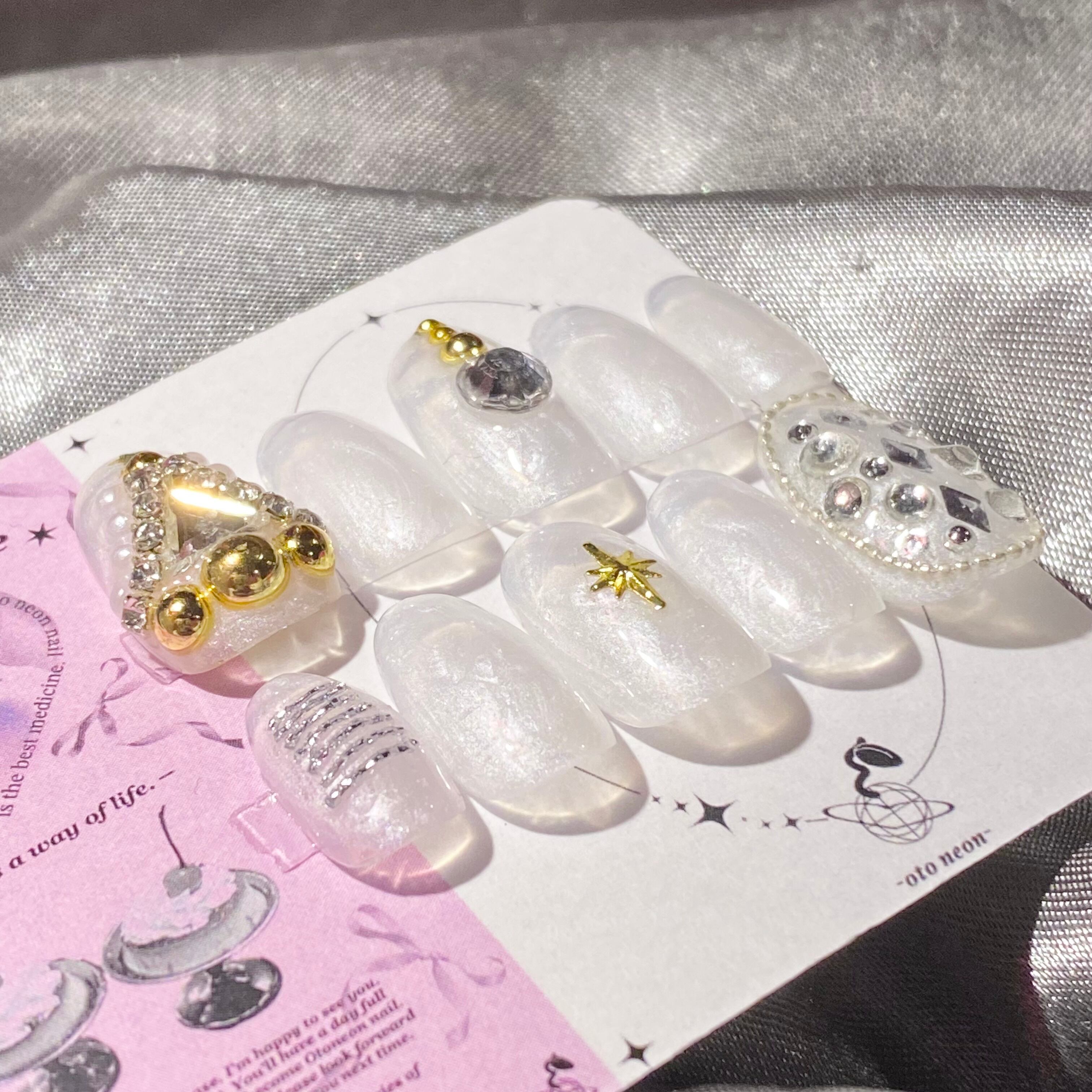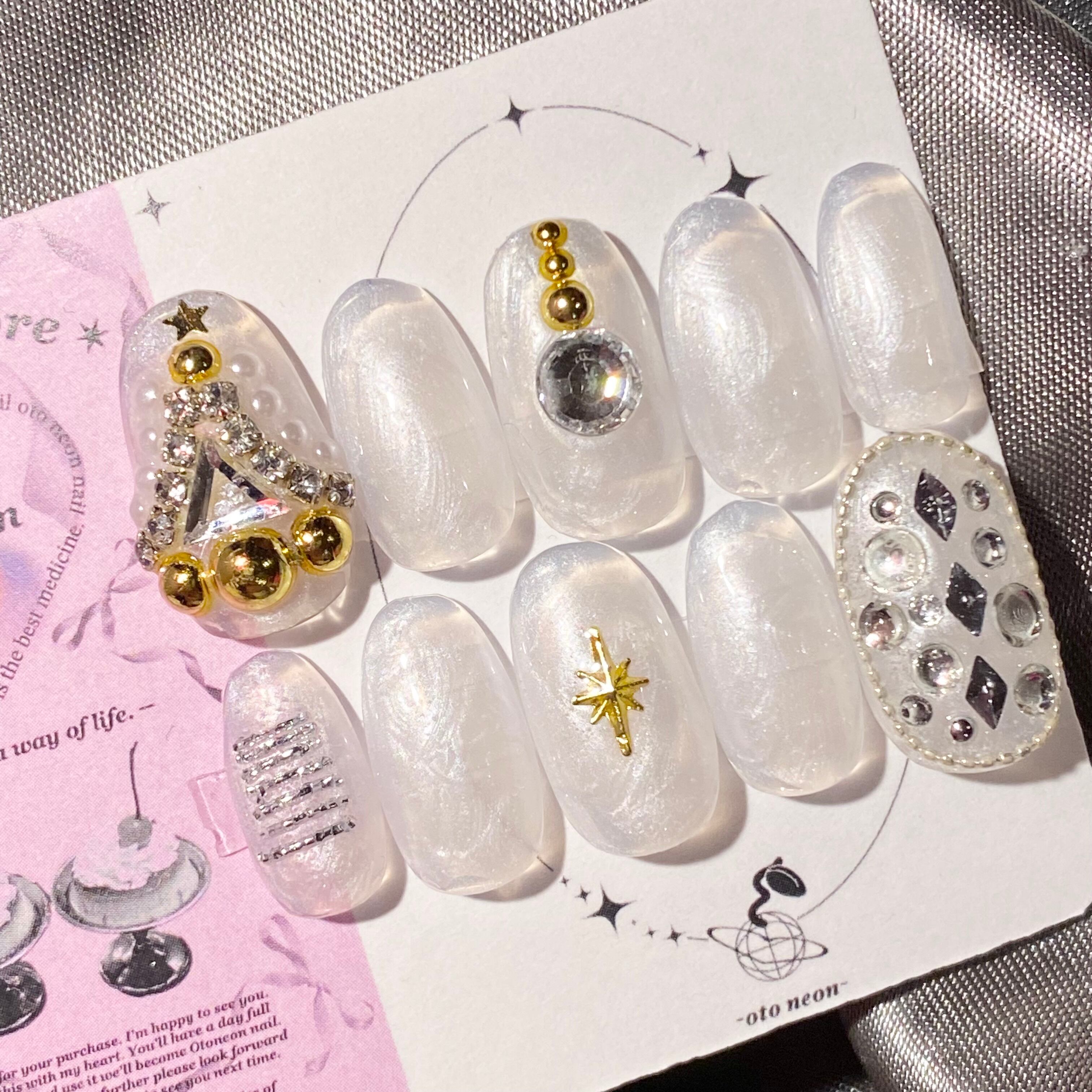 【No.87サイズオーダー】ONN-95-N クリスマス シンプル キラキラ ホワイト ネイル