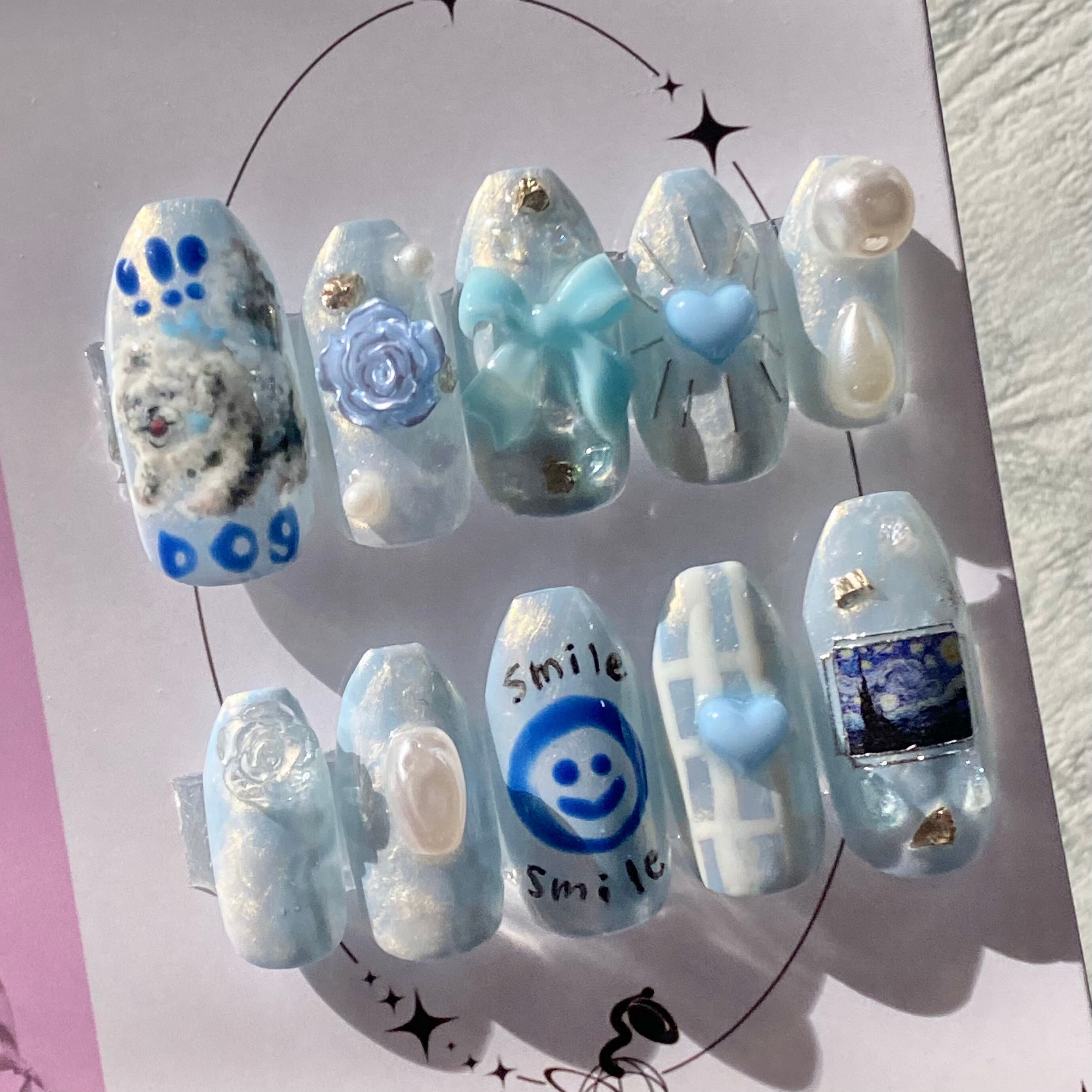 ポップ絵画風bowwowわんちゃんネイル