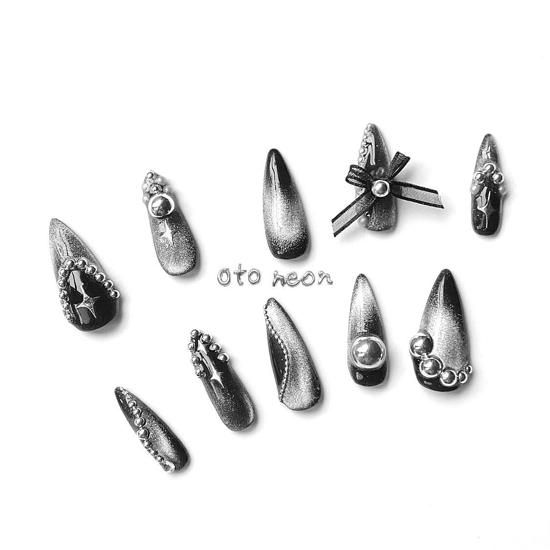 キラキラ ブラック地雷 Y2K 韓国ネイル